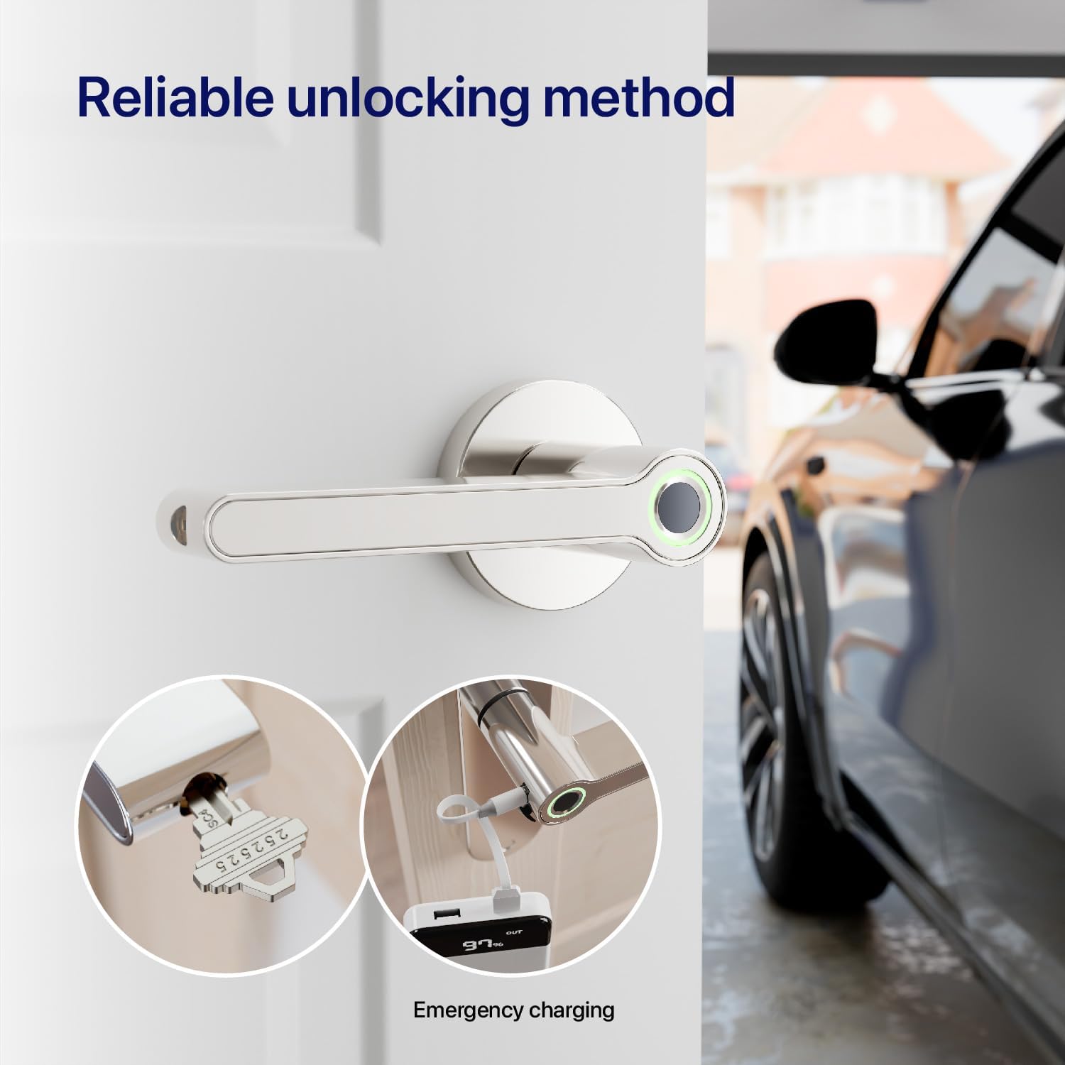 - Mechanical Key Override: 2 included keys for added peace of mind