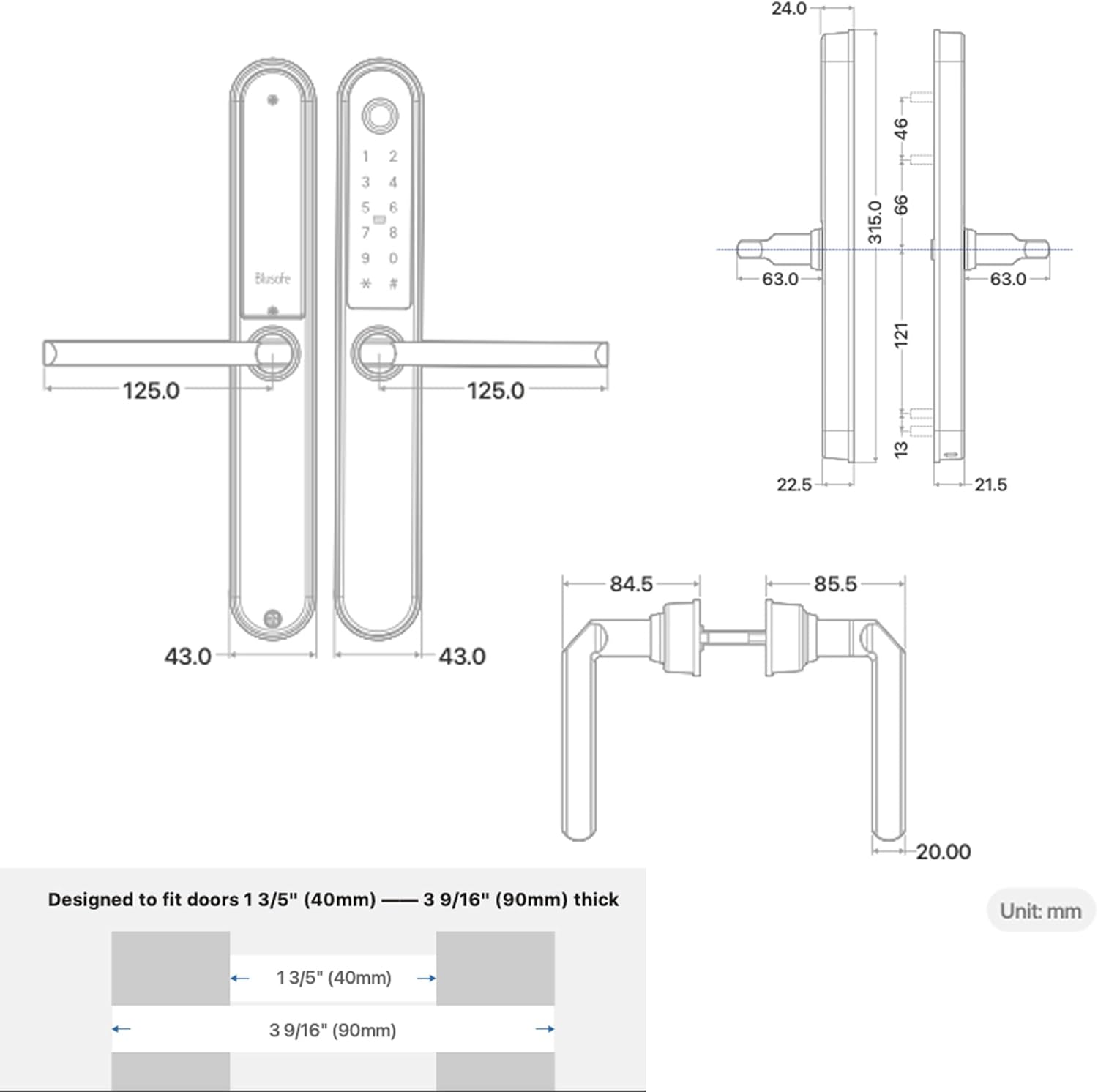 Blusafe Apollo ブラック - ホームセキュリティ、指紋認証、キーカード、キーパッド、アプリ制御、リモートロック/ロック解除用キーレスドアハンドル
